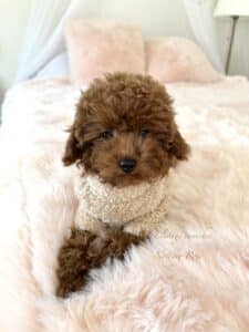 A notre élevage de caniches nous avons fait le choix de produire des caniches de taille toy et poids toy tout aussi craquants mais stables.